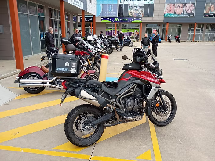 We started off with a bit of a transit section east and then south through roadworks before enjoying more open roads. Once through Lang Lang, we enjoyed some delightful roads and scenery up to Poowong and the gave our suspensions a bit of a test along the bumpy road to Bena before rolling into Korumburra for a cuppa and rest break. The facilities there have been upgraded to accommodate the South Gippsland Rail Trail and provided really good shelter from the wind for those who had brought drink flasks. We weren’t the only riders who had stopped at Kelly’s Bakery.